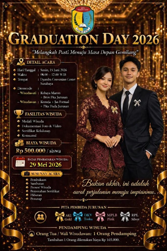 Surabaya, 21 April 2026 — Dalam rangka memperingati Hari Kartini, OSIS SMK Pawiyatan Surabaya menggelar kegiatan bertajuk “Kartini Expression” yang berlangsung meriah di lingkungan sekolah